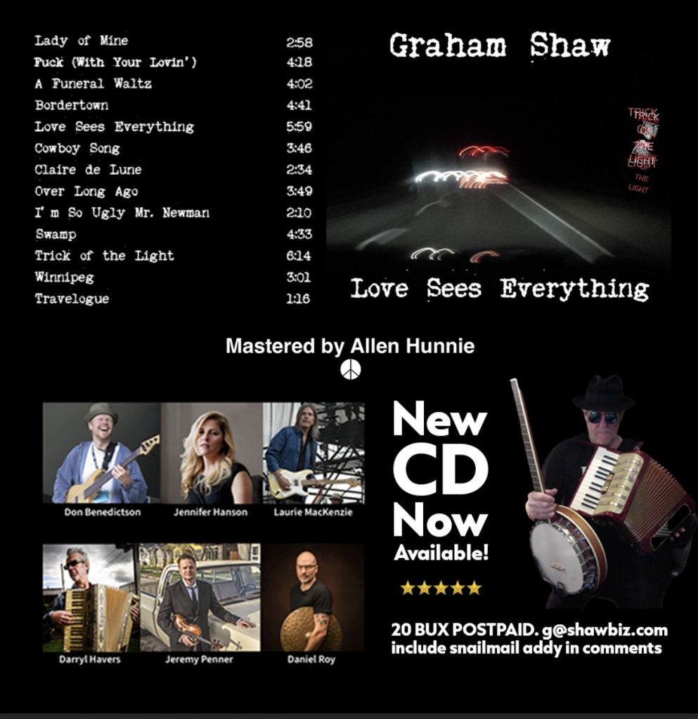 Love Sees Everything CDs now available. Email g@shawbiz.com for details. Thank you!